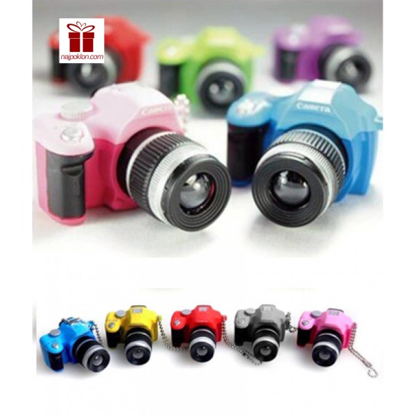 Privezak o ubliku savremenog DSLR fotoaparata sa sve objektivom (neizmenjivim) i blicom (LED diodom) i predstavlja pravu poslasticu za sve one koji ne mogu bez njega da kroče van svog doma. Pored LED diode koja imitira blic, aparat je opremljen i zvučnim signalom koji bliže dočarava pravi opaljeni snimak tj.pomeranje ogledala. Zaista pravi ugođaj za sve foto zaluđenike.
